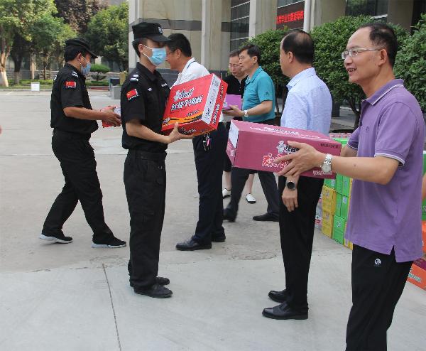 王育选书记等其他校领导为安保人员代表发放了防暑降温慰问品,并嘱托安保人员要以更高的标准、更强的责任、更实的作风、更高的水平、更优的服务,积极主动履职尽责,努力维护校园安全稳定,做师生的安全守护者和暖心人。