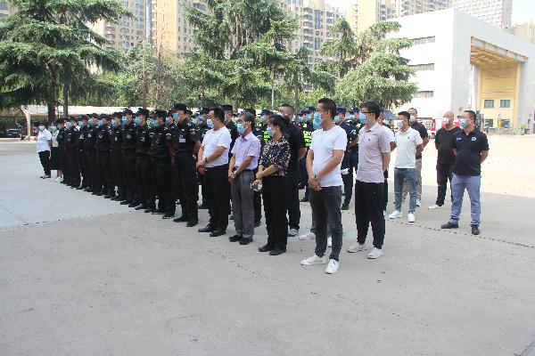 曹鸿代表学校讲话。首先,他对高温酷暑下仍坚守在一线的所有安保人员表示衷心的感谢,对新中标的陕西秦泰保安服务有限公司进驻我校执行安保任务表示欢迎。其次,曹鸿委员代表学校对中军军弘保安服务有限公司过去一年为我校安保工作做出的努力和贡献表示感谢,尤其是对其在疫情防控工作中发挥的重要作用予以了肯定,并为他们授予锦旗以示表彰。最后,他希望保卫处全体安保人员在今后的工作中继续发扬不怕苦、不畏难、特别能战斗的精神,全力做好新形势下的校园安全稳定工作,为学校的教学科研等工作做好保驾护航。