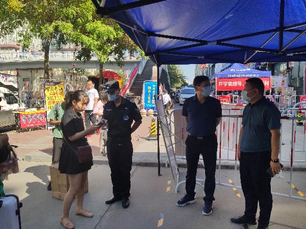 4日下午,曹鸿校务委员在保卫处处长王向阳的陪同下来到学校北门,现场查看常态化疫情防控门禁管控落实情况。听取了在校生返校第一天南、北门学生入校情况的汇报,实地查看了学生入校通道布防,了解了查验证件、测量体温、扫码登记、体温异常复测的操作流程,看望慰问了现场的工作人员,并与返校的学生、家长亲切交谈,对返校报到过程中的重点环节、风险点和防控点提出了具体的指导意见。