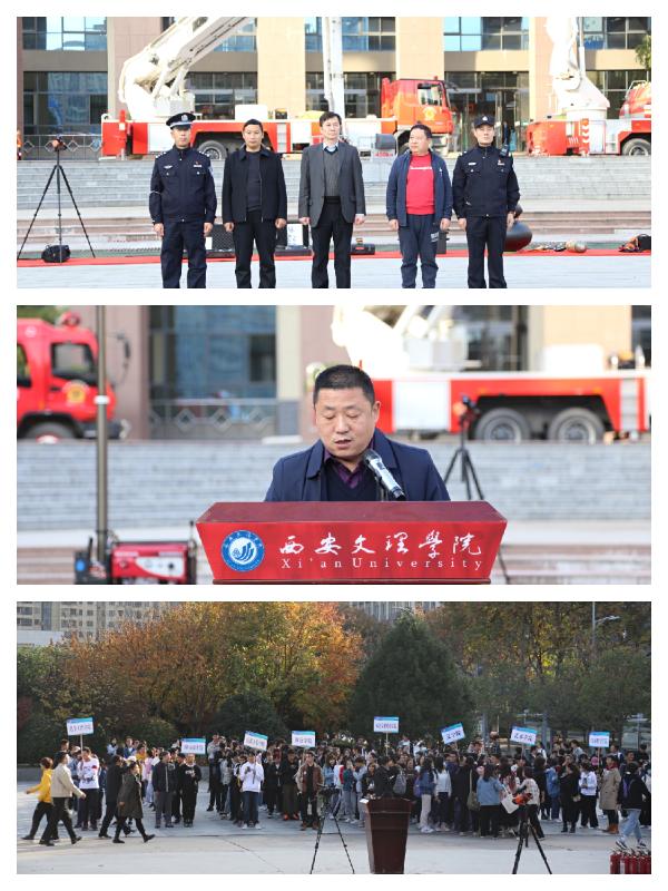 开幕式上,曹鸿代表西安文理学院致辞。他强调学校一直以来高度重视“平安校园”建设工作,并建立了“力量配置到位、教育防范到位、检查处置到位、硬件措施到位、严抓严管到位”的安全防范体系,确保了学校各项教育教学工作的顺利开展。最后,曹鸿对继续做好学校消防安全工作做了重点部署,并要求各二级单位牢固树立安全发展理念,始终把师生的生命安全放在第一位,建立健全安全责任体系,把安全责任落实到岗,落实到人。