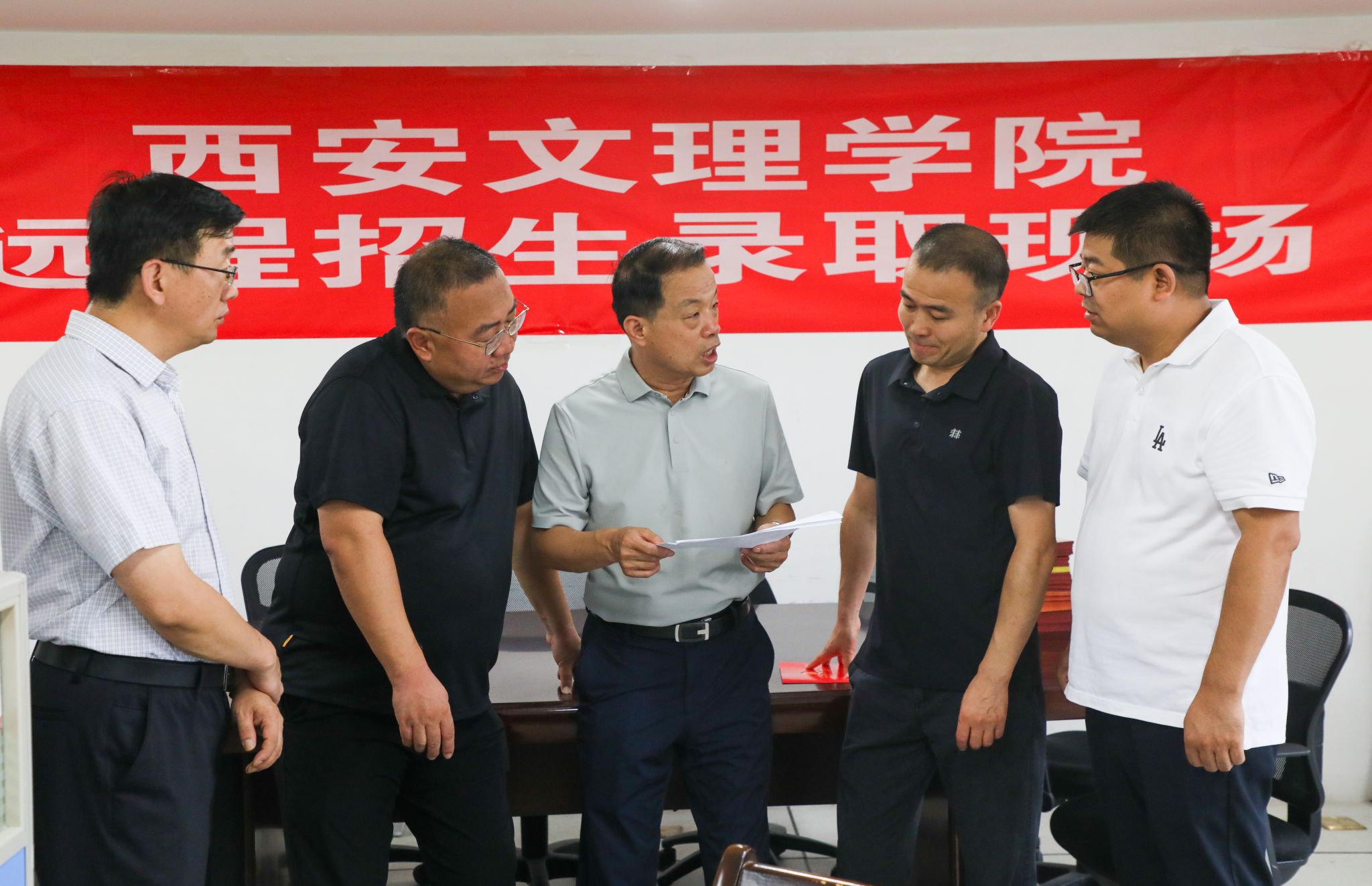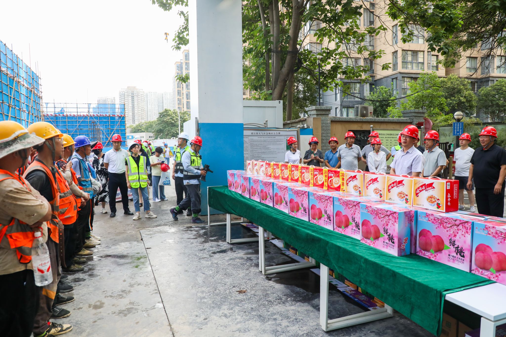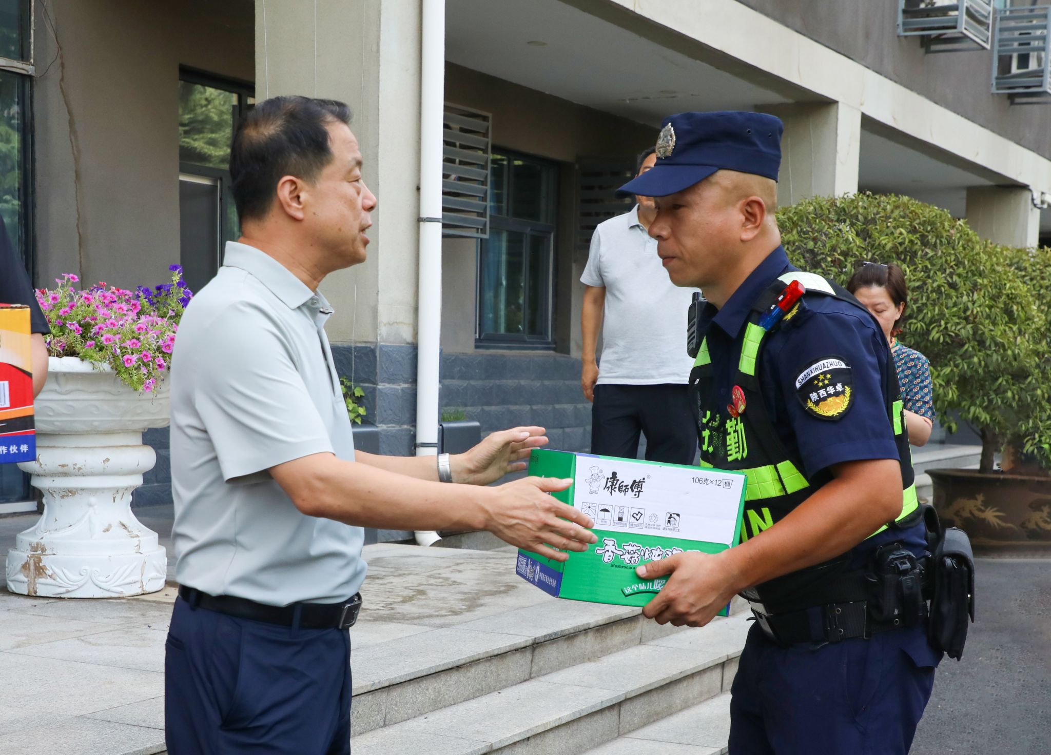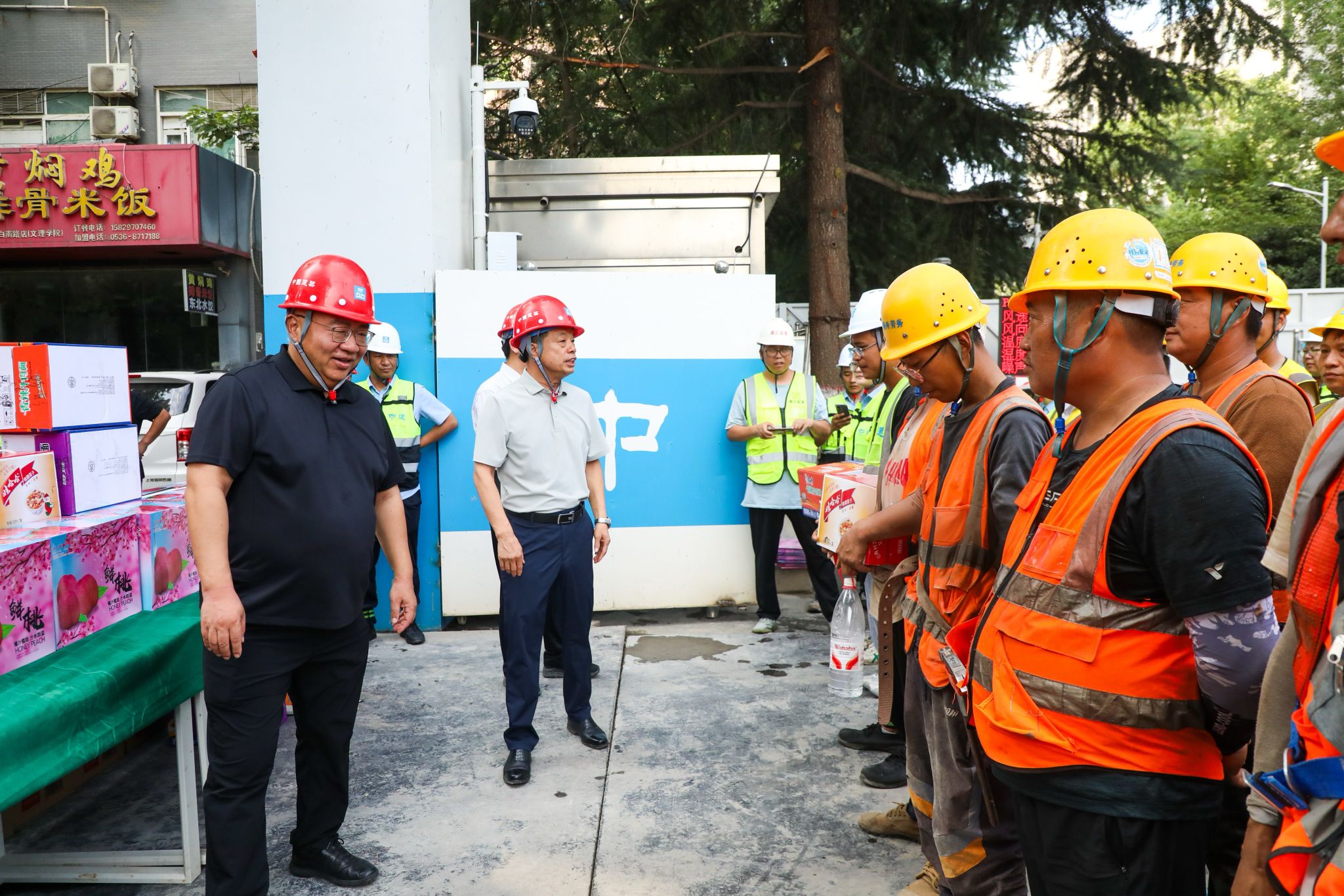 7月16日,西安持续高温,校党委书记王育选、副书记任晖,副校长、工会主席龚杰昌一行深入校园,慰问暑期坚守岗位的工作人员,并送去防暑降温品。