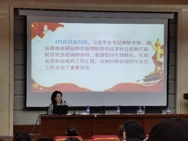 2020年6月10日上午,后勤党总支、教辅党总支、继续教育学院党总支邀请学校 “习近平总书记来陕考察重要讲话精神”宣讲团孟英教授在图书馆报告厅作宣讲培训,三个党总支所属部门的全体同志参加了报告会,会议由周晓娟、荆晓萍、刘卫利分阶段主持。