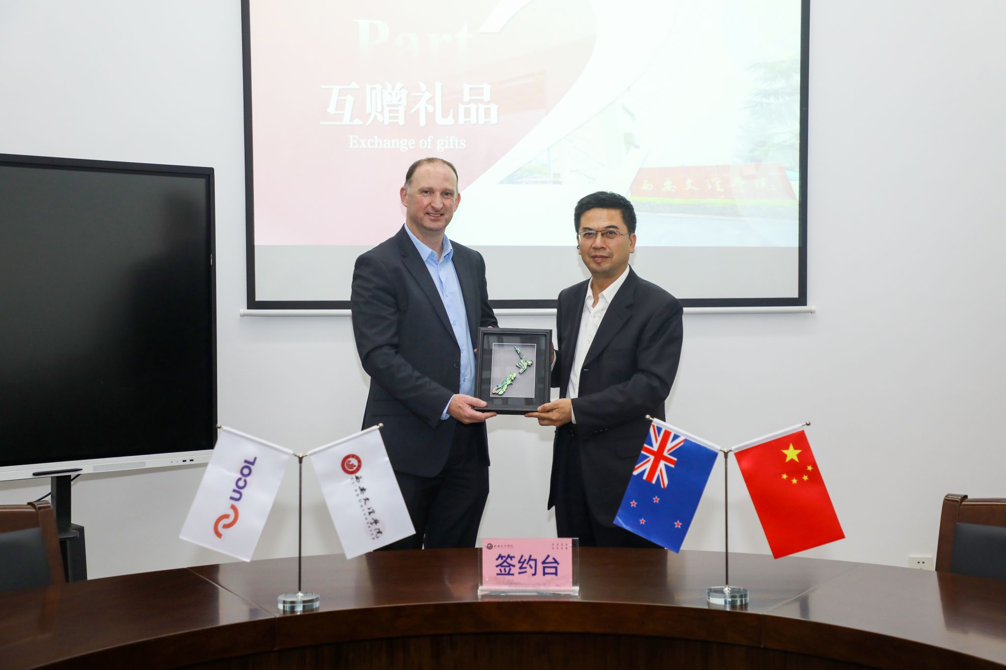 9月8日下午,我校成功举办与国立新西兰理工所属国立联合理工学院(UCOL)中外合作办学机构协议及章程的签约仪式。UCOL校长贾思敏·格罗夫、副校长迪恩·兰金及其他高级管理人员通过线上线下结合的方式共同见证了这一历史性时刻。我校校长陈刚出席签约仪式,学校党政办公室、教务处、招生就业处、计划财务处、国际交流处及相关学院负责人参会。会议由我校副校长刘明利、国立新西兰理工所属国立联合理工学院跨国教育总顾问李长学共同主持。