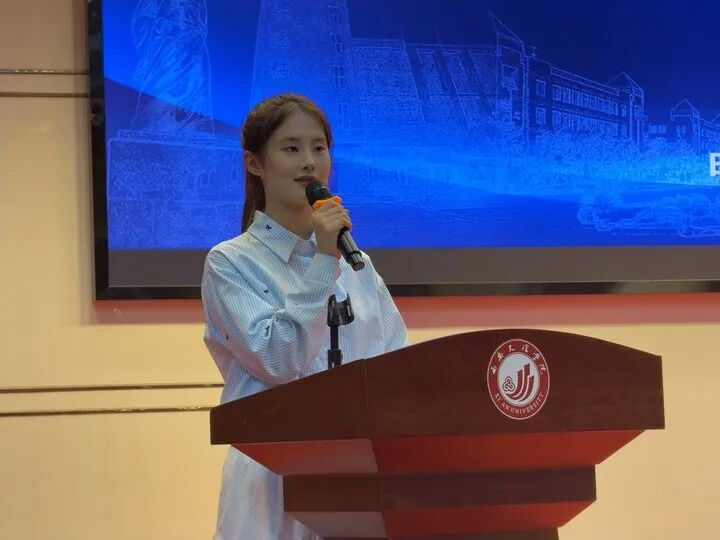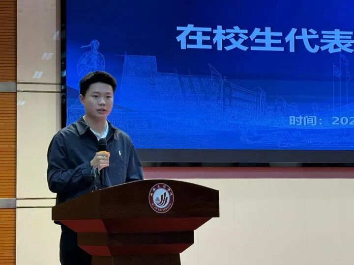 随后,教师代表陈艳老师围绕 “知行合一,经世致用” 院训,从夯实专业基础、锤炼实践能力、担当时代使命三方面为新生明晰成长方向;在校生代表董欣瑞结合自身经历,从自我突破、目标规划、行动落实等维度分享宝贵经验,鼓励新生大胆探索、热忱追梦;新生代表孙兆瑞则分享对校训的理解与成长规划,字里行间满是笃定与热情,引发新生共鸣。