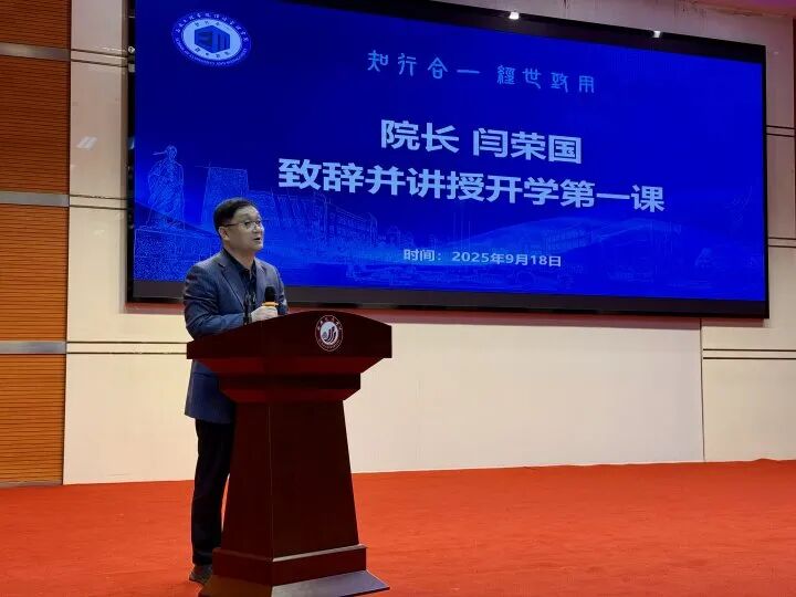 会上,闫荣国院长首先致欢迎辞,并以《在阅读与思考中锻造不可替代的自己》为题讲授开学第一课。他从 “读书与思考” 的深层价值切入,系统讲解 “T 型知识结构” 的构建方法,深入阐释 “将知识转化为智慧与行动” 的实践路径,为新生勾勒出大学四年的成长蓝图,同时寄语新生 “以书为舟,以思为桨”,在专业学习中沉淀深度、广泛阅读中拓展广度、实践历练中锤炼真知,成长为 “独一无二、不可替代” 的经管人。