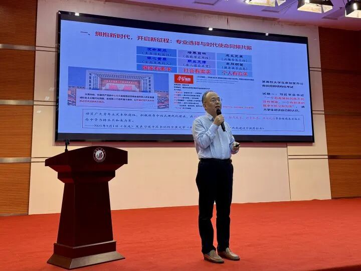 会议第二阶段,张军学教授开展入党启蒙教育。他从 “专业选择与时代使命同频共振”“深刻领会时代对青年的期望”“立足专业规划大学生活” 三个层面,帮助新生认清个人理想与国家发展的紧密联系,明确青年责任担当,为新生未来成长点亮指路明灯 。