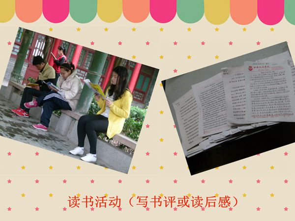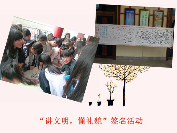 校园大扫除,同学们积极参加,教室、宿舍等校园环境因同学们的辛勤劳动而格外整洁干净;读书活动,展示了同学们对文学的热爱和出色的文采;“讲文明,懂礼貌”签字活动中,同学们积极踊跃地在宣传海报上留下自己的名字,表明了“文明礼貌我先行”的决心;英语单词接龙和跳大绳这两个集体竞赛项目中,同学们争先为班级赢得荣誉,充分体现了同学们强烈的集体意识和班级凝聚力。