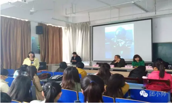 会议伊始,卫智茹老师介绍了项目的具体内容和实施情况,就时间安排、报名流程、赴美实习企业地点及在美国的科研学习、生活经历等问题进行了全面讲解。她希望同学们能参加对外交流留学活动,提高自己的英语水平、交流能力与综合素质,丰富学识。随后,小学教育专业的吴道珍同学提到了自己去美国体验生活的点点滴滴,从期待到失望又到惊喜,她用自己的经历与同学们分享了提高英语水平的方法,同时她也见证了自己的成长,即学会如何制定目标并为之奋斗,学会感恩父母及帮助他人。