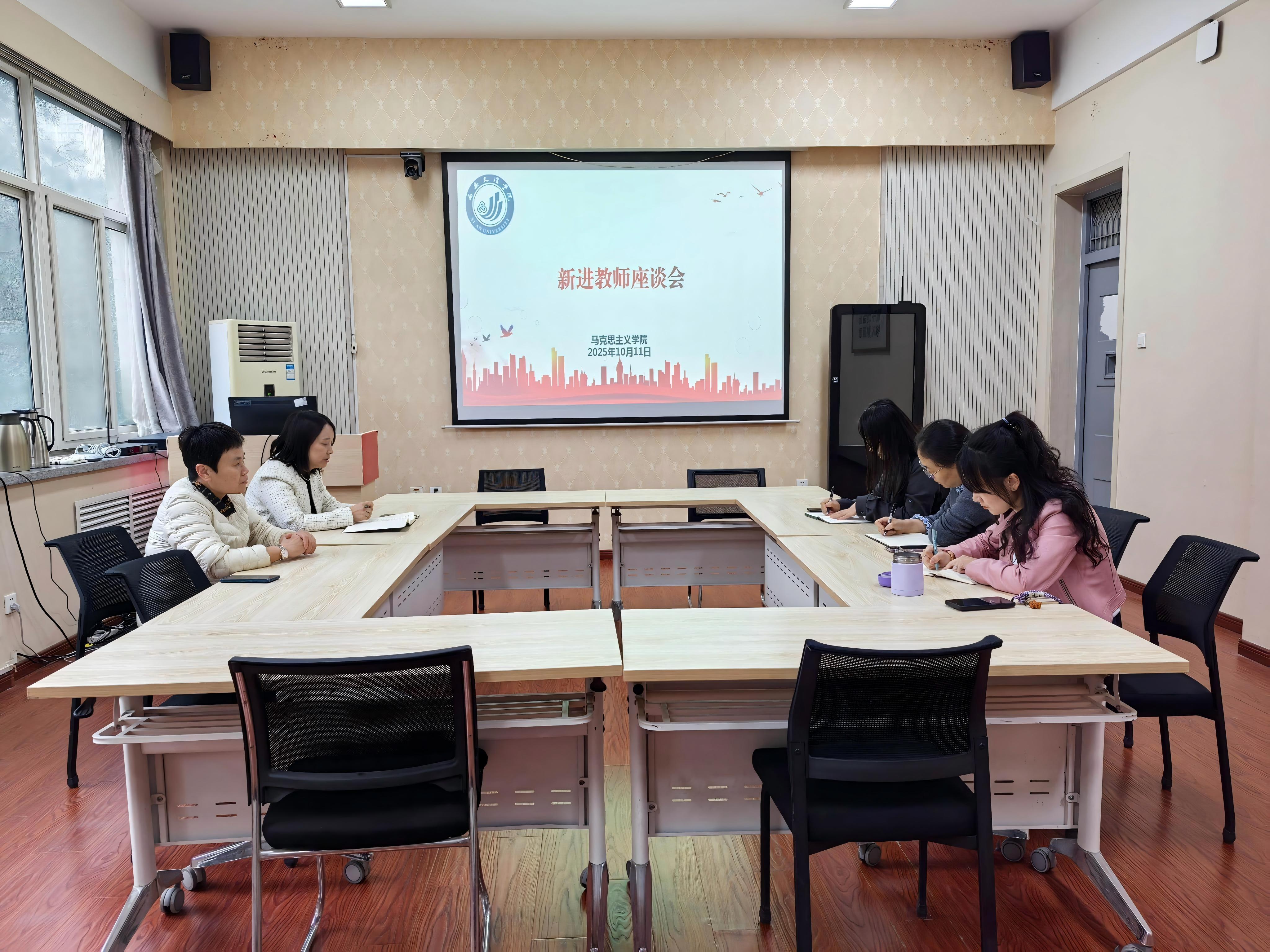 2025年10月11日下午,马克思主义学院召开了新进教师座谈会。院长刘维春、教学副院长申晓玲参加了此次会议。