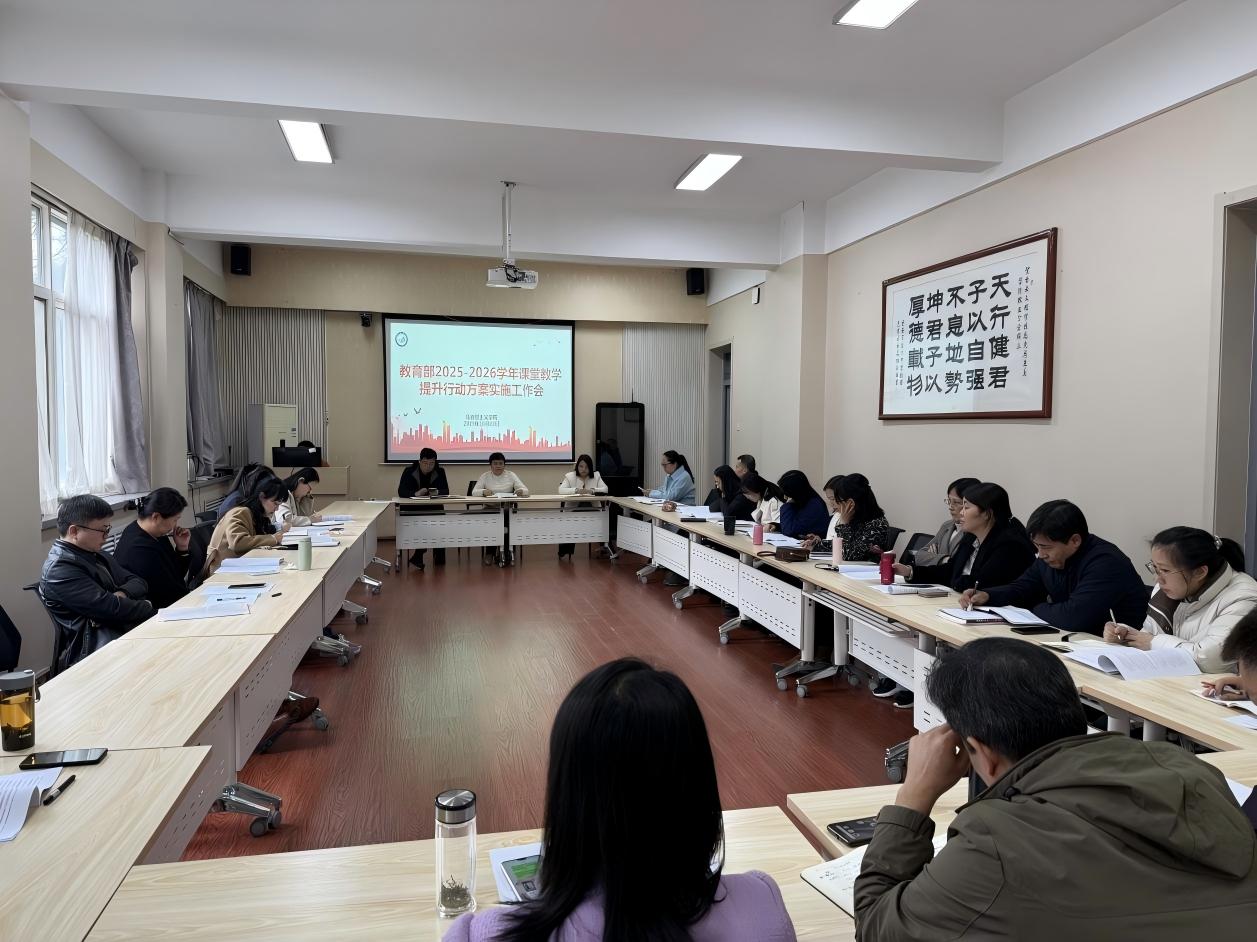 为进一步深化教育教学改革,全面提升课堂教学质量,推动新时代高校思政课建设内涵式发展,马克思主义学院于10月22日在H0258召开2025-2026学年课堂教学提升行动方案实施工作会。学院领导班子成员、各教研室主任及全体教师参加了此次会议。会议由教学副院长申晓玲主持。