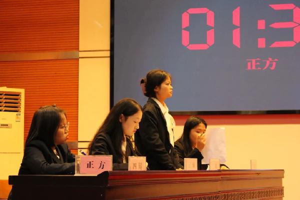 本场辩论赛的参赛队员分别是:一辩易冯宗倩、二辩戚婷婷、三辩王可欣、四辩秦紫涵,我们看到了参赛者们深入剖析话题,全面理解问题,以独特的视角和敏锐的思维,提出了许多精辟的观点。他们在赛场上冷静应对,激烈辩论,用严谨的逻辑和充分的证据,展示了自己的实力和风采。