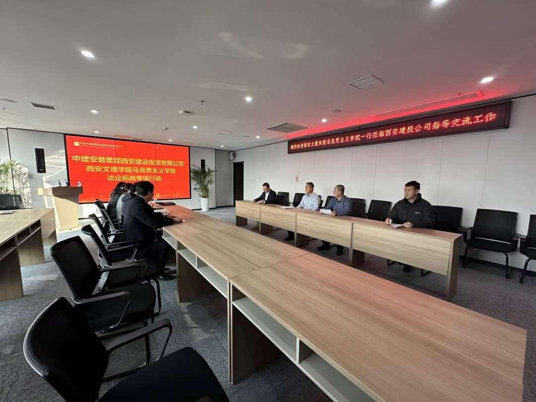 为贯彻落实教育部“访企拓岗促就业”专项行动要求,深化院企合作交流,有力促进毕业生更充分更高质量就业,1月12日下午,马克思主义学院党总支书记刘永平带队前往中建安装集团西安建设投资有限公司开展访企拓岗活动。
