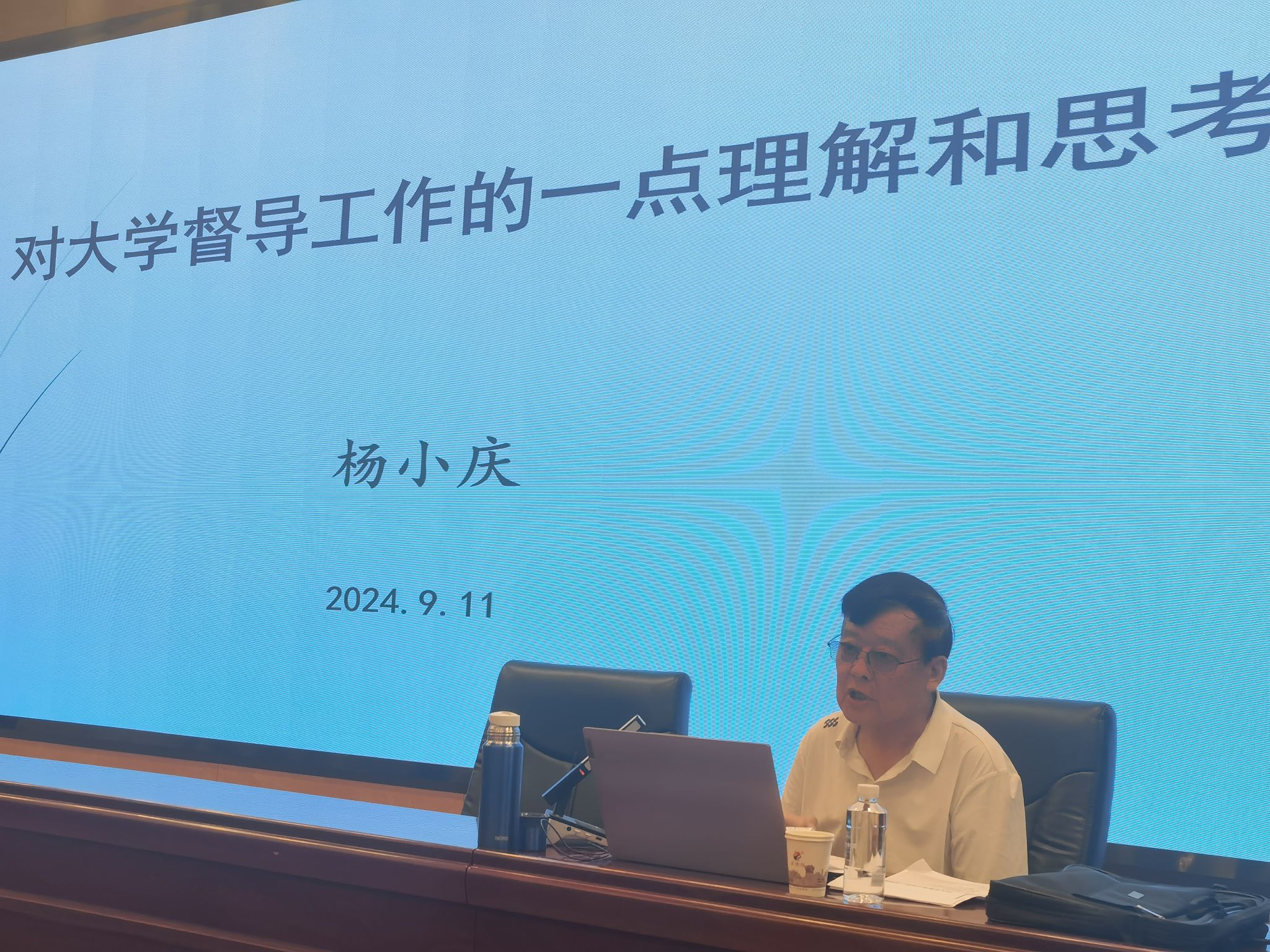 杨小庆老师根据自己长期从事教学管理及督导工作的经验,做了题为《对大学督导工作的一点理解和思考》的专题报告。他深入浅出地介绍了大学教育教学督导的三大重要作用和四项主要职责,从督导是什么,谈到了督导做什么,应该具备哪些素质和条件,强调了督导要不断学习教育理论、教育技术、学科知识、法律法规和高等教育政策,养成终身学习的好习惯。讲座受到了与会老师的热烈欢迎和高度肯定。