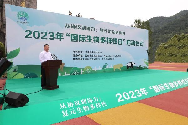 为迎接第23个国际生物多样性日,推动建设人与自然和谐共生的美丽陕西,5月22日上午,陕西省生态环境厅联合西安市生态环境局、长安区人民政府在秦岭野生动物园隆重举办“5·22国际生物多样性日”宣传活动启动仪式。省生态环境厅党组书记、厅长孙丽,西安旅游集团党委副书记、总经理陆飞,生态西安研究院副院长张九东出席仪式,省生态环境厅党组成员、副厅长姚晓军介绍了我省生物多样性保护工作开展情况。