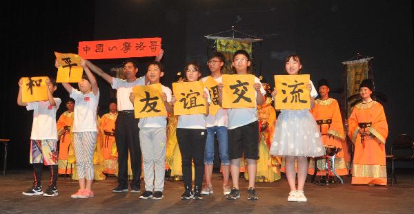 726日晚,本届儿童节文艺演出在摩洛哥穆罕默德五世大剧院隆重举行。开场第一个节目是由中国西安城隍庙鼓乐社和陕西省教育书法研究会组织的少年书法交流团联袂表演。典雅清幽、浑厚大气的鼓乐和孩子们书法现场展示相得益彰,青少年书法家书写的“和平”、“友谊”、“交流”和一个大大的“福”字,表达了中国少年儿童对世界的祝福和对和平的向往。最后一声“中国——摩洛哥”的欢呼声将气氛推向高潮,全场掌声雷动,被中国文化的魅力所感染。会后,代表团团长张昭接受了摩洛哥国家电视台的现场采访。