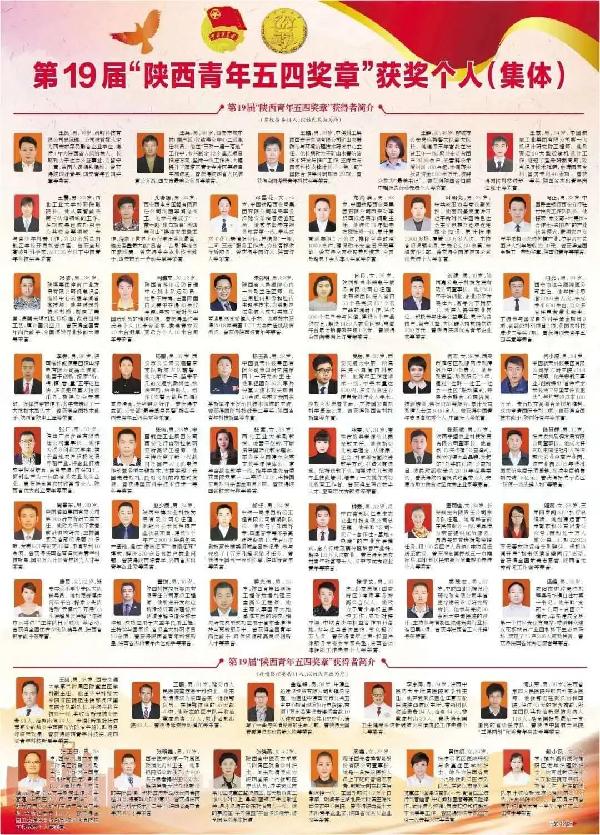只争朝夕,不负韶华,青春永远在奋斗拼搏之中焕发色彩。由共青团陕西省委、陕西省青年联合会共同颁授了第19届“陕西青年五四奖章”,表彰青年中的优秀典型和模范代表。“陕西青年五四奖章”是共青团陕西省委、陕西省青联授予陕西优秀青年的最高荣誉。该奖项集中展示当代陕西青年的精神品格和价值追求,树立政治进步、品德高尚、贡献突出的优秀青年典型。