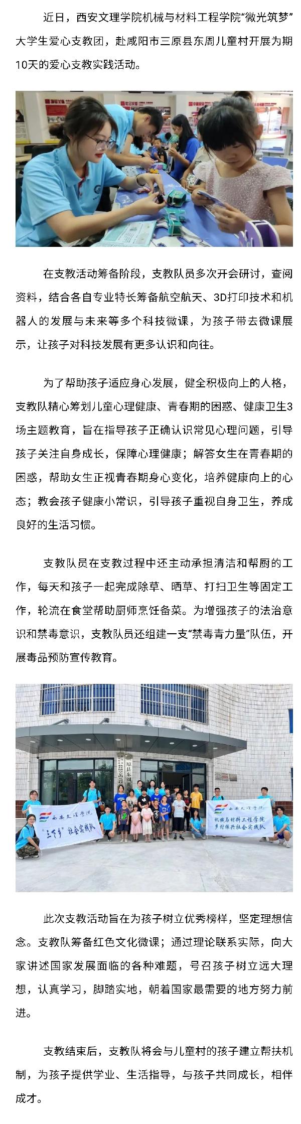 社会实践 | “微光筑梦”——西安文理学院机械与材料工程学院开展爱心支教实践活动