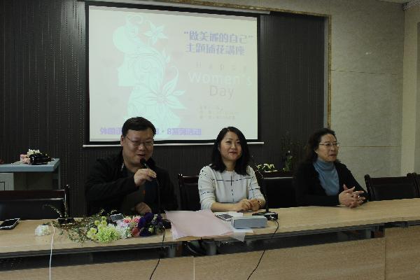 阳春三月,花香四溢,这是一个属于花的季节,是属于全体女同胞们的节日。在国际妇女节来临之际,为体现对女性职工的关怀,丰富女职工的文化生活,3月7日下午,外国语学院为全院女教工精心举办了一场以“做美丽的自己”为主题的插花培训沙龙。