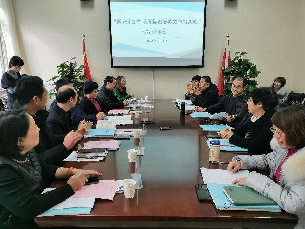 1月11日上午,外国语学院组织的《西安市公共场所标识语英文译写规则》专家评审会在弘文楼H0240举行。来自西安外国语大学的乌永志教授、杨红英教授、李本现教授、陈慧教授以及西安文理学院外国语学院韩红建教授组成的专家评审组对《西安市公共场所标识语英文译写规则》进行了详细评审。中共西安市委外事工作委员会国际交流中心主任王东和领事新闻处处长戴晗昀出席会议并讲话。外国语学院副院长杨红梅教授主持会议。编写组及修订组全体成员参加会议并仔细聆听了专家意见。
