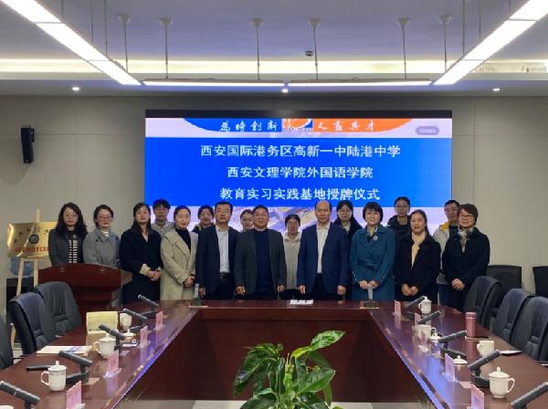 2023年11月29日,西安文理学院外国语学院先后与高陵区第一中学以及西安国际港务区高新一中陆港中学举行实习基地和教育实践基地签约及授牌仪式。外国语学院院长韩红建、副院长熊国芳、英语系主任鲁晓霞、副主任薛维及相关教师参与了此次活动。