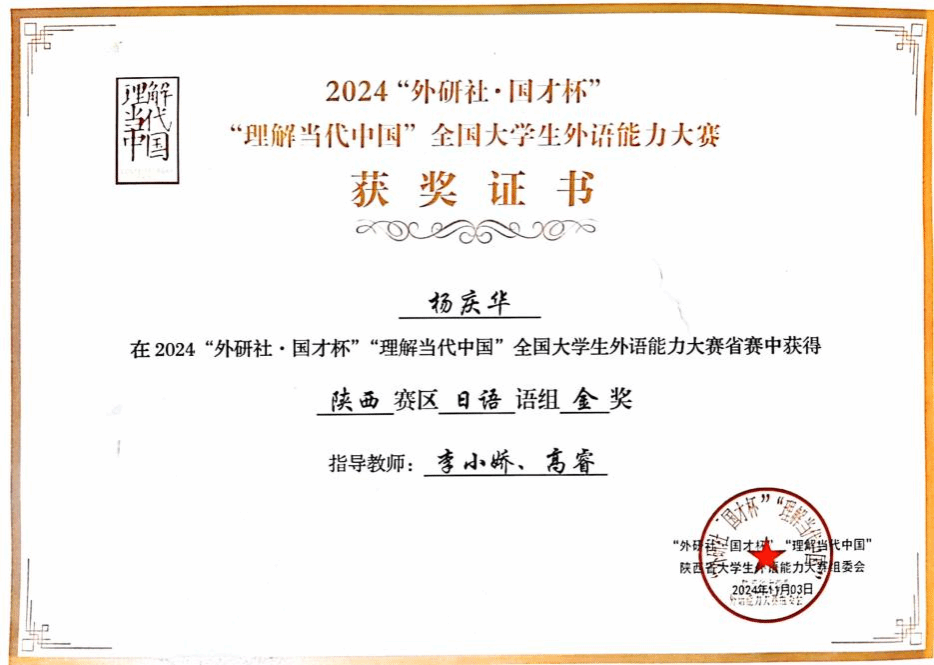 【喜报】日语系学子在2024“外研社·国才杯”“理解当代中国”全国大学生外语能力大赛陕西省赛中喜获佳绩