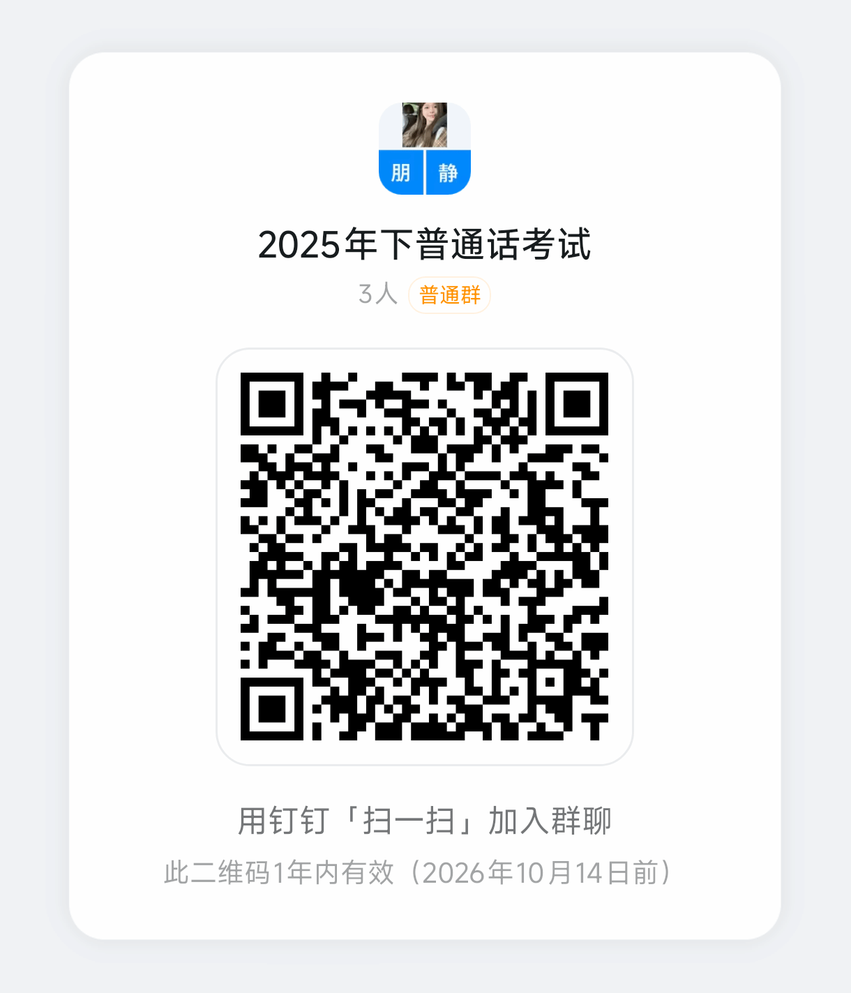 钉钉群二维码(注:请本班负责人务必在提交本班考生资料的同时加入该群,届时将在群里通知缴费事宜)