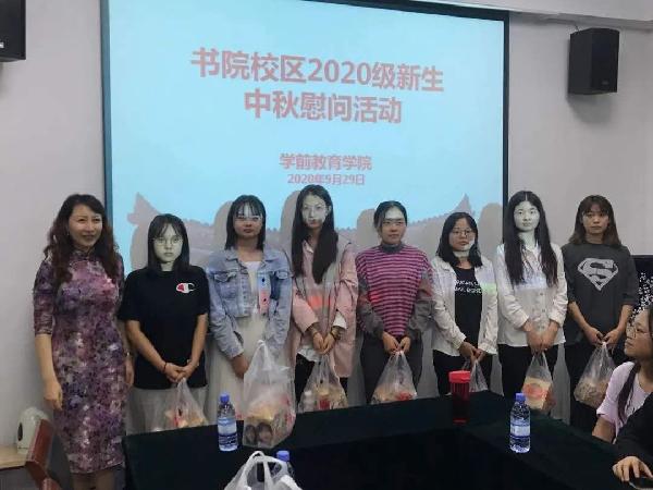 桂飘香迎国庆,中秋校园情意浓。9月29日中午,学前教育学院院长蔡军、党总支书记彭小芸、党总支组织员韩军、副书记韩朝、副院长赵四鸿、办公室主任韩亚萍来到书院校区,组织召开了学前教育学院书院校区新生代表座谈会,并给2020级专升本78名同学带去了中秋节慰问品。会议由副书记韩朝主持,书院办公室主任杨雄也参加了会议。