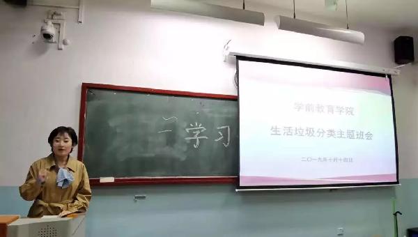 10月14日晚,学前教育学院召开2019级生活垃圾主题班会,会议由19级新生辅导员张思纯老师主