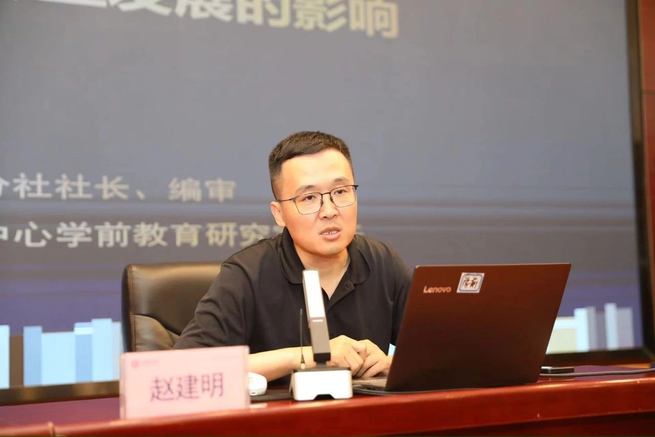 赵建明以“学前教育理论与实践成果的有效整理与转化——兼论对学前教师专业发展的影响”为题。从“教育成果整理对学前教师专业发展的意义”“学前教育理论成果整理应注意的问题”和“学前教育实践成果整理应注意的问题”三个方面出发,用生动的案例对学术成果的整理、规划和出版进行了详细解读。