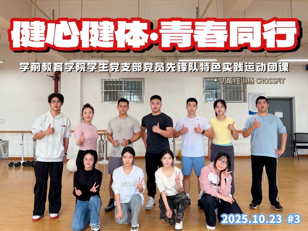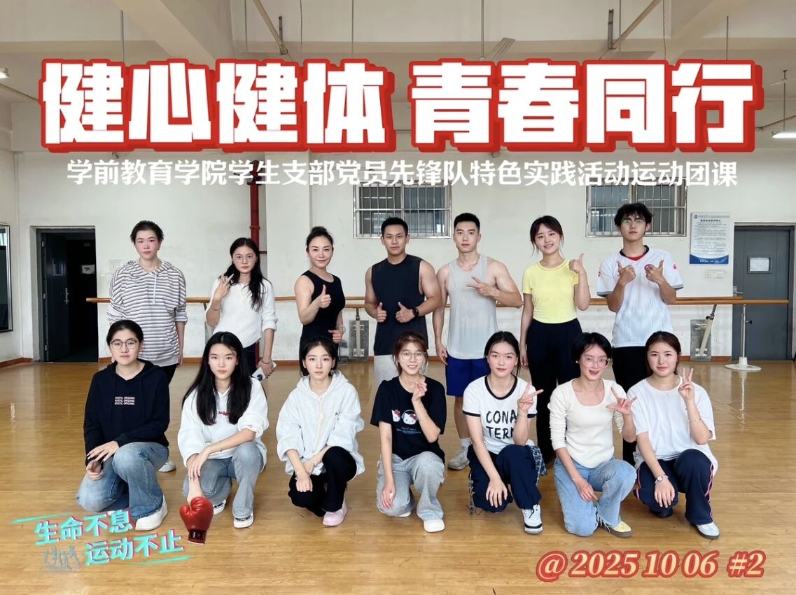 为积极响应“健康中国”战略,深入践行“五育并举”育人理念,将党建育人目标落到实处,近日,学前教育学院学生第一、第二党支部依托“一站式”学生社区,持续开展“健心健体·青春同行”特色实践活动。本次活动由学院“健体”党员先锋队精心策划组织,是探索“党建+专业+社区”三位一体协同育人路径的生动实践,旨在为培养身心健康的“未来幼师”注入红色动能。