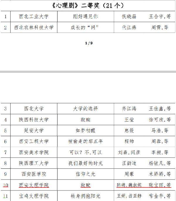 12月11日,省高校心理素质教育研究会公布了“关于表彰第四届陕西省高校心理育人百家慕课学生作品获奖优秀成果的通报”,我校共推荐6部作品均获奖项。