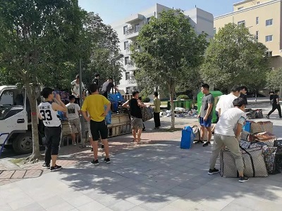 为了按时高质量完成此项任务,学校要求2、4号公寓学生整体腾空。此次搬迁涉及各二级学院约2300人,涉及面广、任务重。为此,主管校领导高度重视,学生处制定了详细的的搬迁方案,并积极召开工作推进协调会,协调财务处保障搬迁经费、保卫处保障搬迁安全、产业集团保洁清运、各二级学院组织学生和准备搬迁物品。连日来搬迁车辆穿梭在校园内有条不紊地转运学生行李物品。
