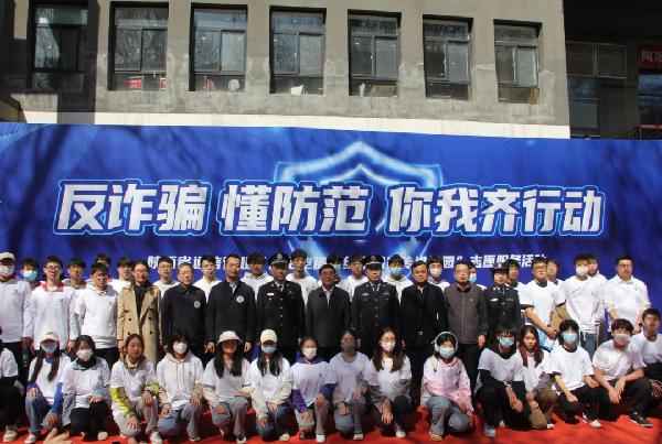 有奖问答环节之后,师生和与会代表们参加了的主题签名活动,大家郑重地在签名墙上立下誓言“反诈骗,懂防范你我齐行动”。