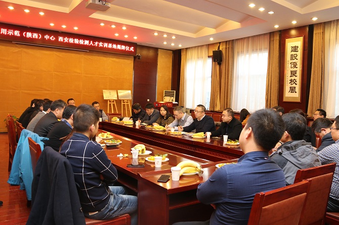 副校长韩权、陕西省科技厅资源统筹中心总工程师陈锐共同为国产科学仪器应用示范陕西(中心)揭牌。化学工程学院院长杨晓慧、西安科技大市场主任张伟国共同为西安检验检测人才实训基地揭牌。北京吉天仪器有限公司市场总监王文熳、丹东百特科技有限公司总经理董青云分享了各自的仪器发展经验。之后,由化学工程学院组织参会人员一起参观了学院大型仪器实验平台实验室和国产仪器应用示范(陕西)中心实验室,与参会人员就仪器的管理、实验室的配置等问题进行了现场交流。