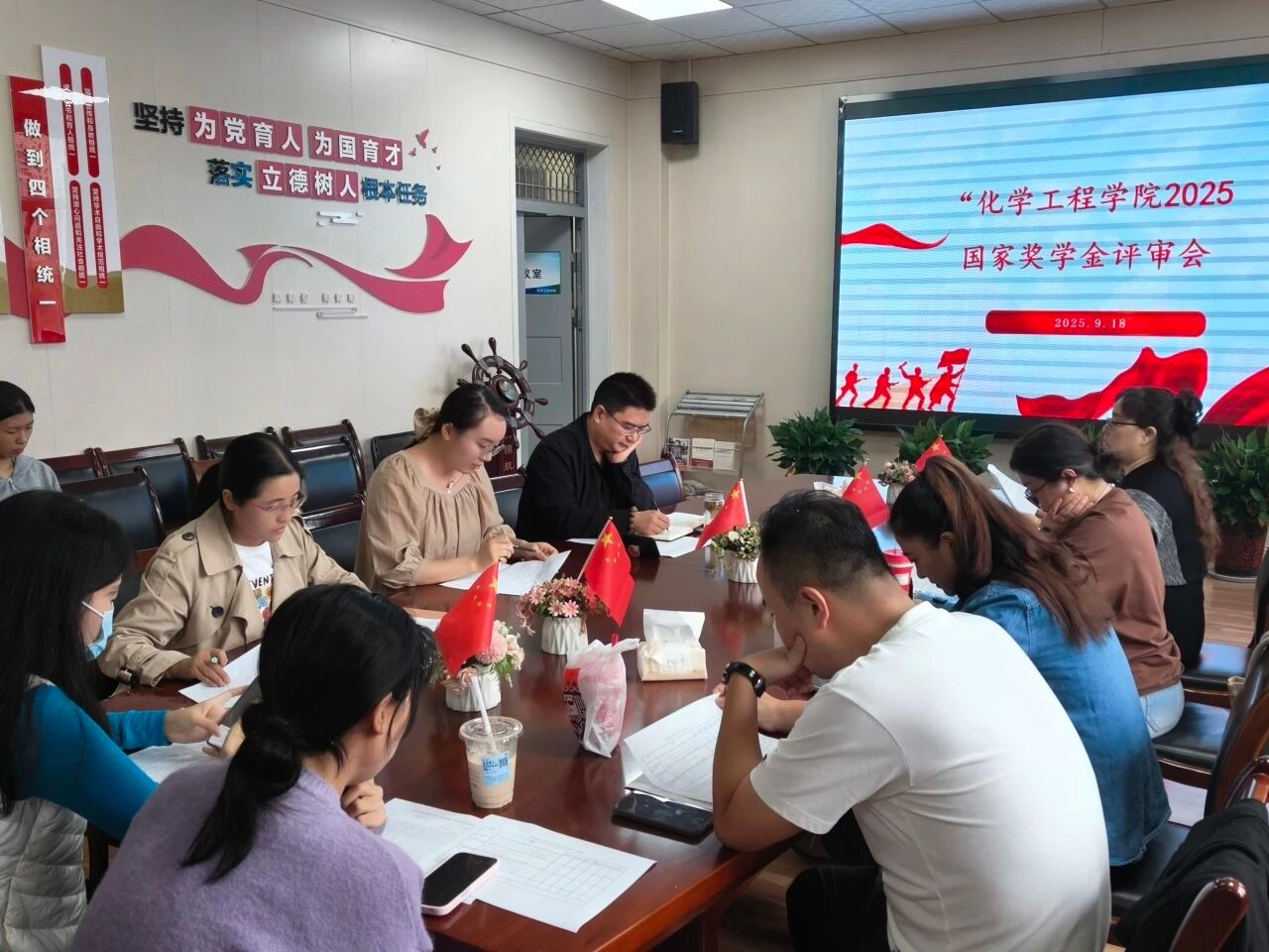为扎实推进国家奖学金评选工作,充分发挥其对学生勤奋求学、全面发展的激励作用,化学工程学院于9月18日中午在学院会议室组织召开2025年国家奖学金联合评审会议,党总支副书记程全伟、各系教师代表、学工办全体成员及国家奖学金候选人共同参会。