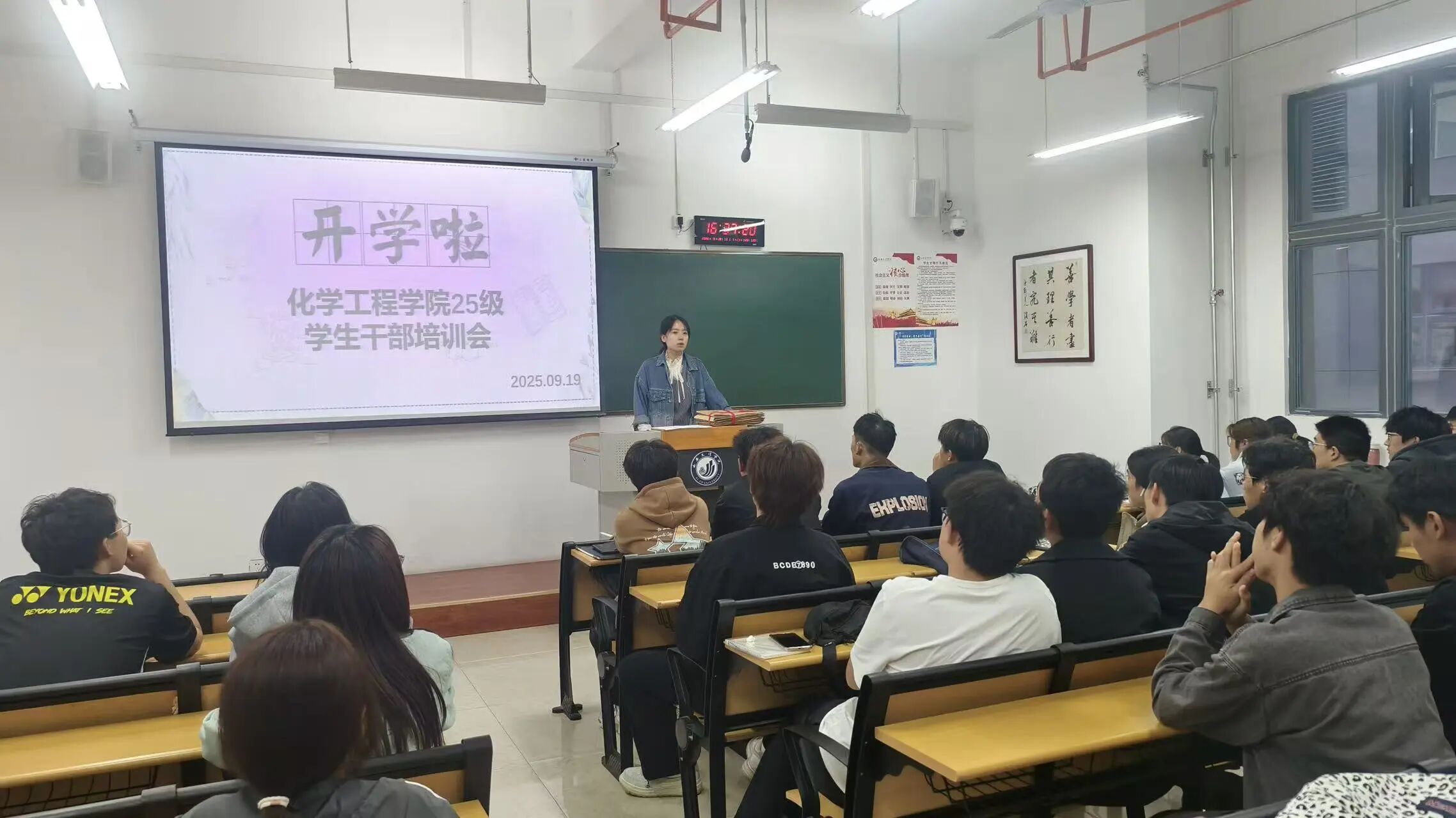2025年9月19日,化学工程学院2025级班委换届选举工作顺利完成后的首次学生干部培训会在实训楼举行。本次会议由辅导员李晨妤主持,全体25级新任班委代表出席会议,共同探讨班级管理规范与协作机制,为新学期学生工作奠定坚实基础。
