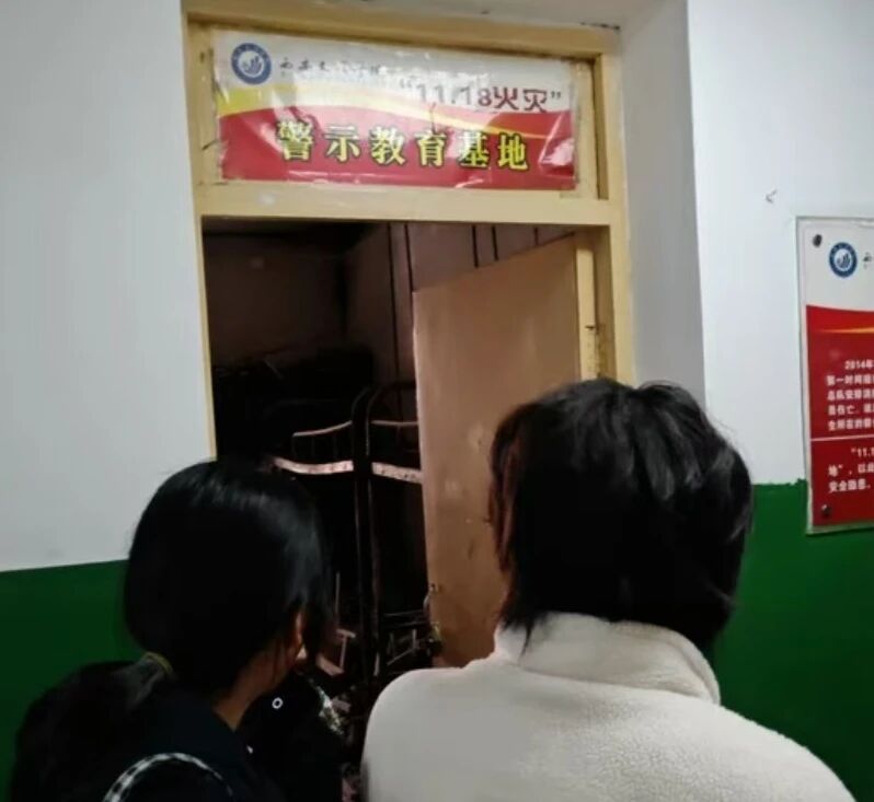 在基地负责人引导下,师生们进入保留火灾原貌的宿舍参观。焦黑的床架、熔化的电器、熏黑的墙壁,以及墙面上尚未清理的消防喷淋痕迹,无声诉说着火灾的破坏力。讲解员结合该宿舍真实案例,详细分析了起火原因、蔓延过程及救援难点。新生们纷纷驻足拍照,参观同学表示:“看到烧变形的门框和散落的课本,突然意识到安全隐患可能就在身边。”