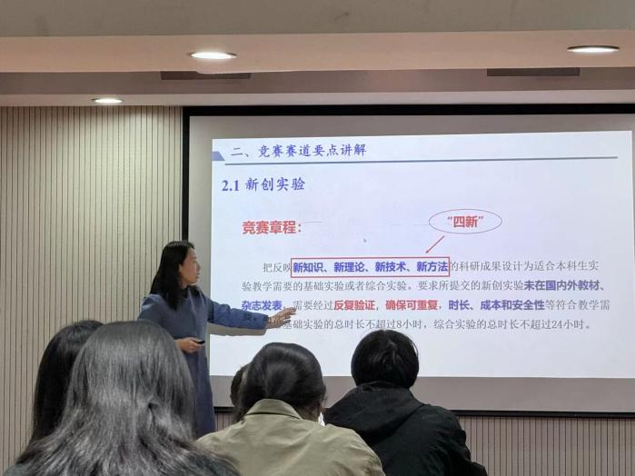 活动伊始,李老师通过深入浅出的方式,详细介绍了大赛的赛道情况、各赛道的重点要求以及如何准备作品等关键信息。她还回顾了近年来的获奖情况,分析了成功案例的特点,并展示了部分优秀的参赛作品供同学们学习借鉴。李老师的讲解内容丰富、条理清晰,为与会学生提供了一个全面理解大赛规则和要求的机会。