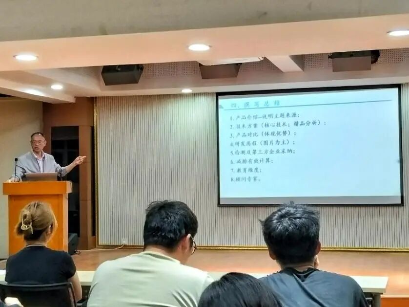 在总结撰写方面,张老师列举了产品介绍、技术方案、产品对比等关键模块,指导学生如何精确展示项目成果。他强调,一份出色的总结报告应同时凸显技术优势与应用价值,兼顾社会效益。