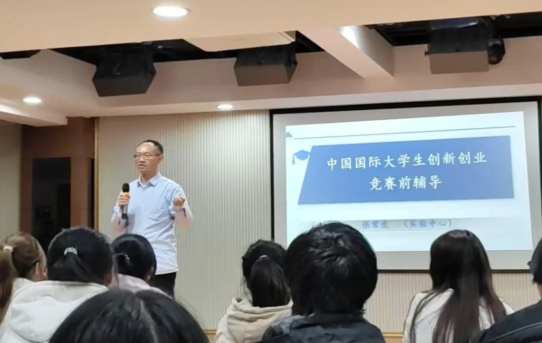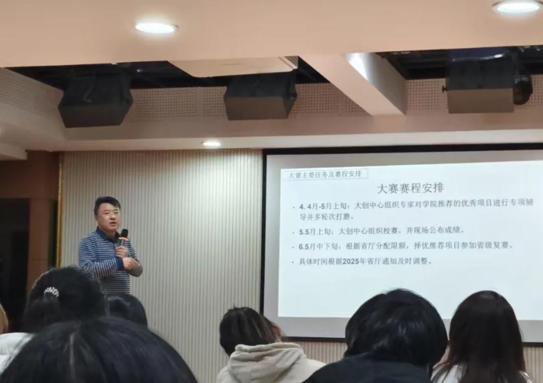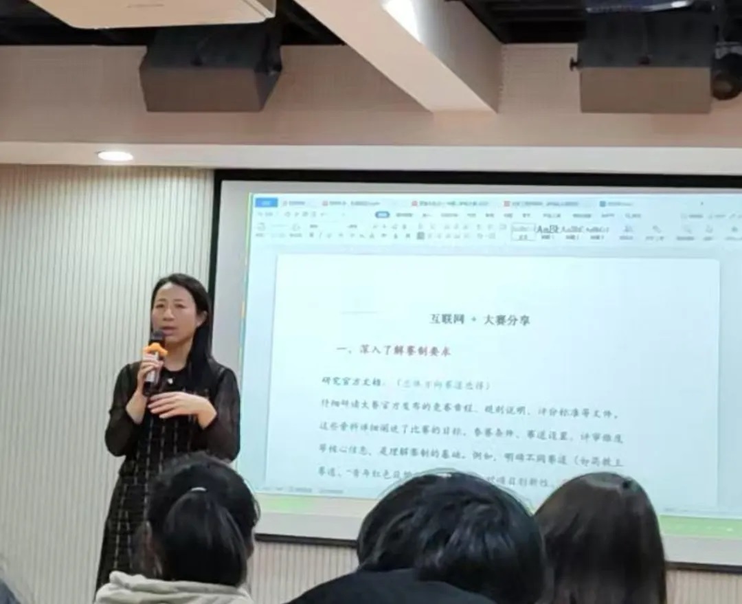之后,往届参赛选手张梦瑶,谢佳伟结合自身经历,深度剖析了大赛规则和评审标准,并结合获奖案例,阐释了创新亮点及成功的关键要素。同时,针对同学们普遍关注的选题方向、项目计划书撰写、路演技巧、PPT制作等问题提供了详尽的讲解与指导。