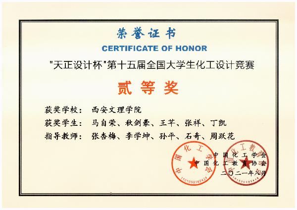 在化学工程学院化工系教师张杏梅、李学坤、孙平、石奇、周跃花等老师的指导下,化学工程学院的马自荣、秋剑豪、张祥、王芊和丁凯五位同学组成的“繁星若醇队”顺利进入西北赛区决赛,并获得全国二等奖。