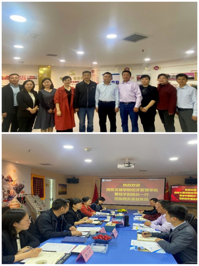 4月18日上午,经济管理学院副院长董冠华、党总支副书记朱芳芳及会计学专业教师张建辉、张小芳,学校培训中心副主任狄曼一行5人前往西安通益集团参观洽谈、访企拓岗,受到通益集团公司总经理王涛、集团党支部书记王崇义及相关部门负责人的热情接待。