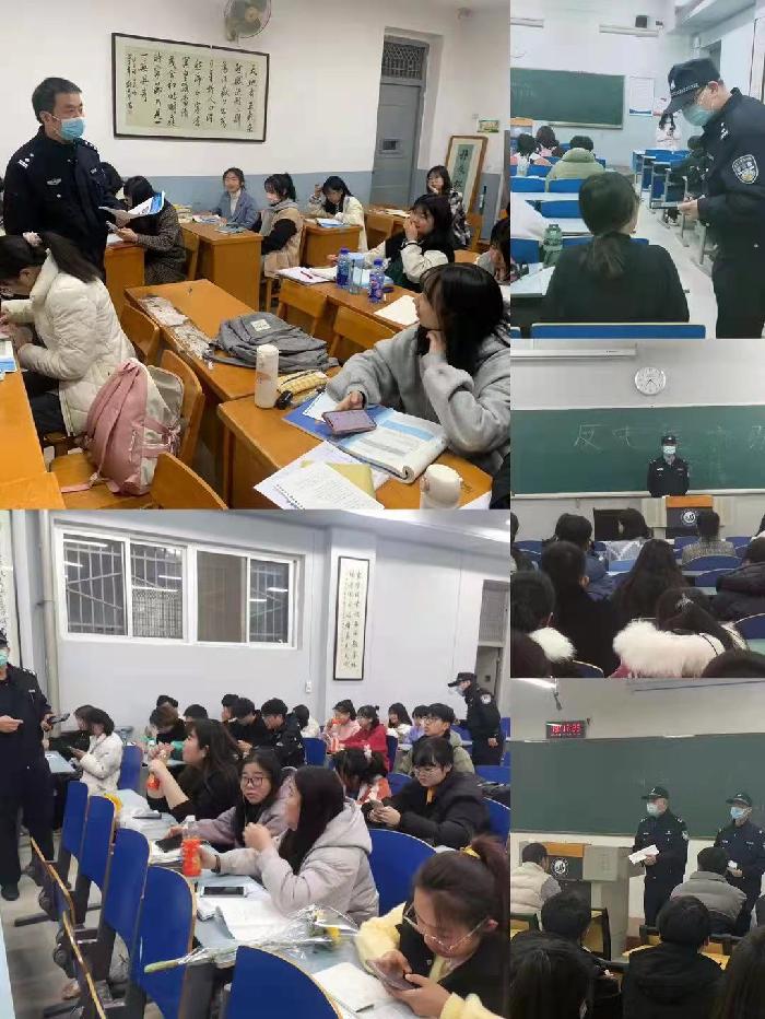 11月18日晚,白沙路派出所、学生处、保卫处利用晚自习时间,首批对我校2021级全体学生进行防范电信网络诈骗教育宣传。