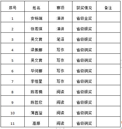 10月28日,2023“外研社·国才杯”“理解当代中国”全国大学生外语能力大赛陕西赛区决赛在西安外国语大学举办,来自全省50多所高校的优秀选手同台竞技,我校共有11名学生在比赛中脱颖而出,荣获佳绩,其中安杨瑞获得金奖,张若瑛等4人获得银奖,梁佩娜等6人获得铜奖。安杨瑞同学将和来自西交大、西外、陕师大等其他高校的18位金奖选手一起代表陕西省,赴北京参加全国竞赛。此项赛事要求选手英语基础扎实、口语表达流畅、综合能力强。这是我校在此项赛事中历年来取得的最好成绩,也是外国语学院学生首次代表陕西省参加全国外语类大赛。