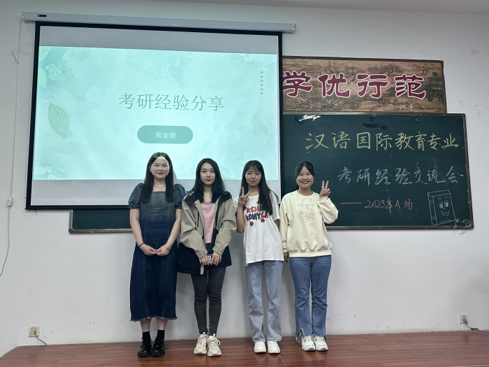 2019级张秀琴、鲁孟仪、周金娟、刘垛4位成功考研的学生做了精彩的经验分享,通过个人情况分析、如何择校、院校考情分析、公共课及专业课的备考规划建议等方面,解答了有考研意向同学的困惑,为大家的备考提出了建议、规划,总结了择校、备考的经验教训,从而使汉语国际教育专业学生考研更具指导性和方向性。