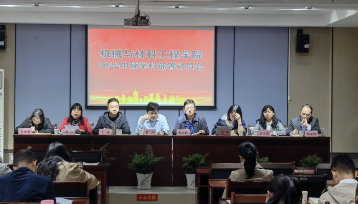 4月29日下午,机械与材料工程学院在行知楼召开2022申硕学科部署动员会。院长张运良,学研处处长韦炜,学院党总支书记俞华,学院班子其他成员及申硕学科相关教师代表50余人出席会议。会议由党总支组织员、副书记于浦主持。