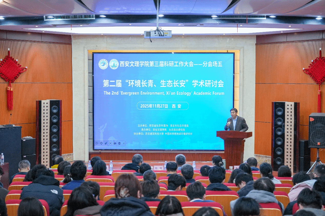 11月27日,由陕西省生态环境厅、西安市生态环境局主办,我校与生态西安研究院承办的第二届“环境长青、生态长安”学术研讨会在图书馆报告厅召开。本次活动作为学校第三届科研工作大会第五分会场的重要组成部分,聚焦生态修复、生态产品价值实现、绿色发展与环境治理等前沿议题,共同探讨环境生态领域学术前沿,分享创新成果。