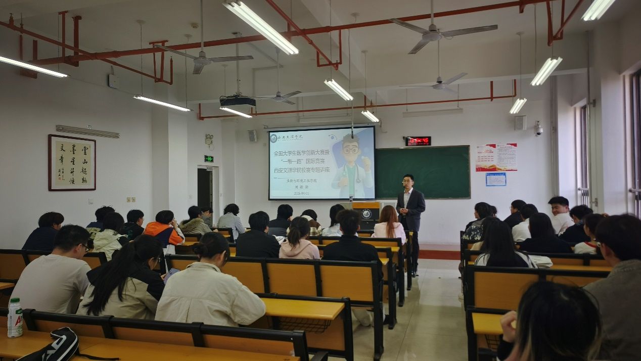 4月1日下午,由教务处(大学生创新创业教育中心)主办、生物与环境工程学院承办的第12届全国大学生医学创新大赛暨“一带一路”国际竞赛西安文理学院校赛赛前培训会在实训楼召开。校赛负责人刘颖勋博士和往届获奖选手漆俊兵同学分别介绍了大赛赛制和参赛技巧。细胞与制药工程教研室全体教师、参赛队伍的指导教师及学生,共计50余人参加了本次培训会。
