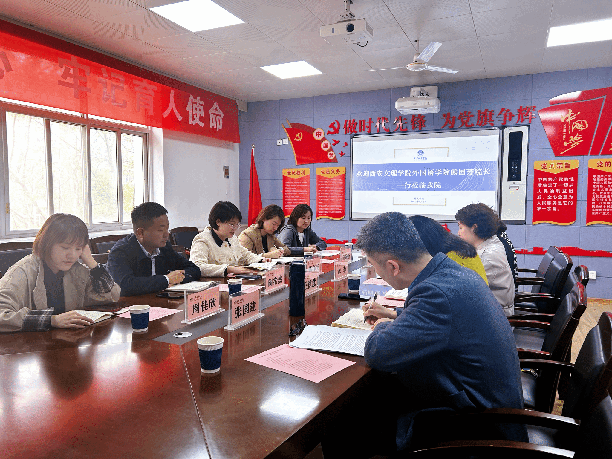 4月2日下午,我校外国语学院副院长熊国芳带领系部主任等一行6人赴西安翻译学院英文学院开展调研交流。西安翻译学院英文学院副长李燕及各系部负责人参加座谈。