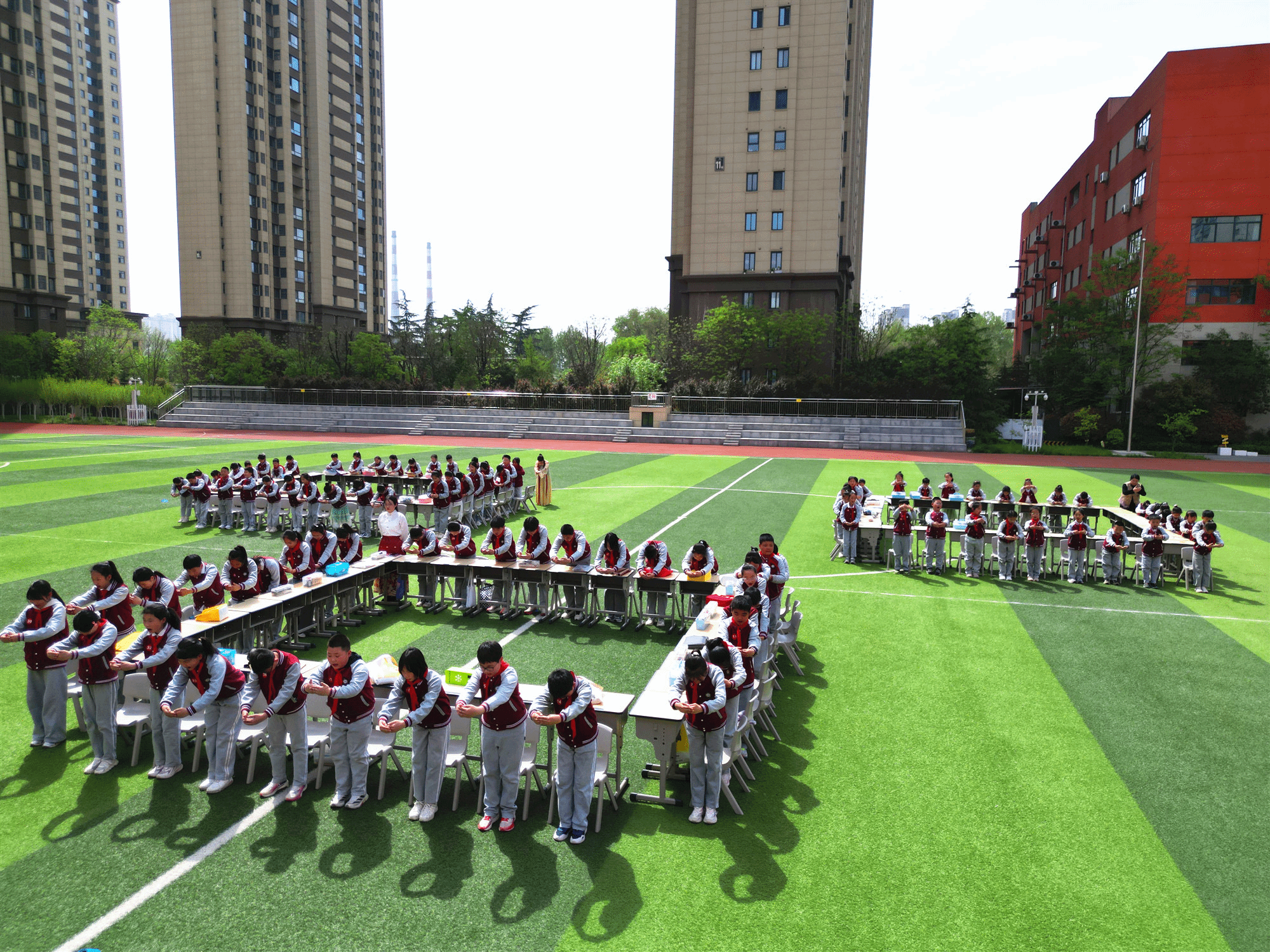 4月9日,西安莲湖德杰实验小学举办首届“翰墨飘香润童心,百人挥毫展风采”百人书法大赛。应我校20级优秀毕业生、该校书法教师冯舒悦邀请,书法学系主任何薇教授、系主任助理刘寰宇、教研室主任郑志超及优秀学生代表受邀出席。